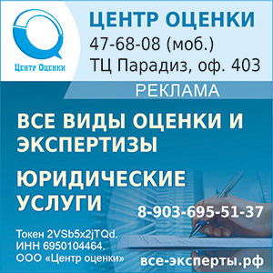 Реклама. Токен 2VSb5x2jTQd. ИНН 6950104464. ООО «Центр оценки».