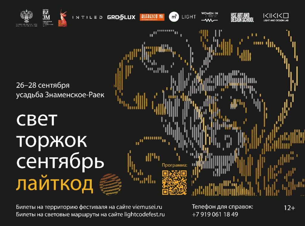 Темой фестиваля станут «Золотые нити». В программу войдут вечерние световые маршруты, дневная деловая программа с лекциями и мастер-классами, а также интерактивный квест «Золотая нить». Более 20 световых объектов, созданных 30 художниками и дизайнерами, будут размещены на территории усадьбы и в Главном доме. Увидеть инсталляции можно будет с 19:00 до 23:00 все три дня. Торжественное открытие запланировано на 18:00 26 сентября. В числе участников фестиваля — Школа дизайна НИУ ВШЭ, КИККО лаб, WIL, Альфреско, Интилед, Гросслюкс, Кубометр света и MK ILLUMINATION.