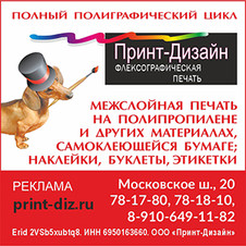 Реклама. Erid 2VSb5xubtq8. ИНН 6950163660. ООО  «Принт-Дизайн»