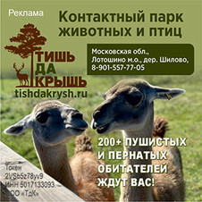 Парк животных и птиц "Тишь да крышь" – идеальный выбор для побега от городской суеты и незабываемого отдыха среди живой природы. Здесь она сама вступает в диалог, достаточно протянуть ей руку навстречу. 200+ пушистых и пернатых обитателей ждут вас! Покормите с ладони альпаку и ланей, поймайте в кадр великолепие павлина, понаблюдайте за диким сервалом.