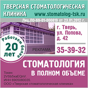 Реклама. Токен 2VSb5wyo9eH. ИНН 6905080035. ООО «Тверская стоматологическая клиника»