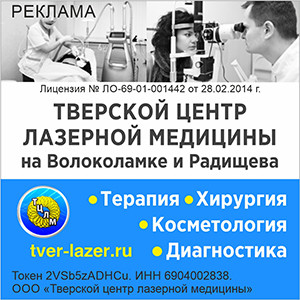 Реклама. Токен 2VSb5zADHCu. ИНН 6904002838. ООО «Тверской центр лазерной медицины»
