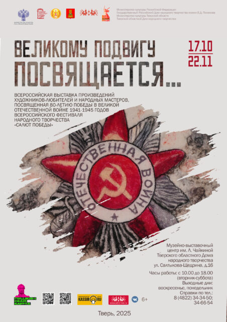 Всероссийская выставка произведений художников-любителей и народных мастеров «Великому подвигу посвящается…», посвящённую 80-летию Победы в Великой Отечественной войне 1941-1945 годов 6+
