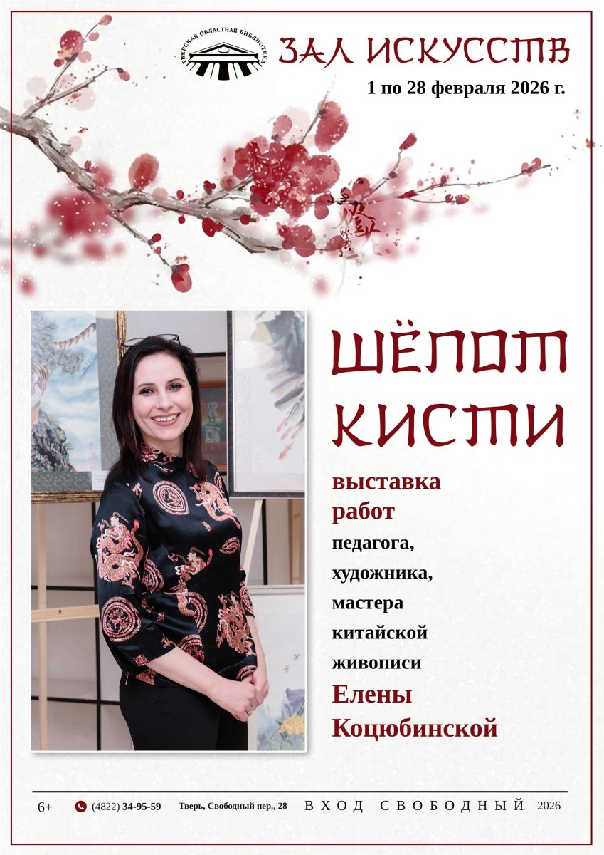 Китайская живопись гохуа с точки зрения европейца довольно необычна и даже загадочна. Она разительно отличается от европейской живописи. Причем это различие присутствует буквально во всем, в материалах, технике исполнения и в инструментах. 15 февраля в 15:00 пройдет творческая встреча с Еленой Коцюбинской в рамках выставки "Шепот кисти".