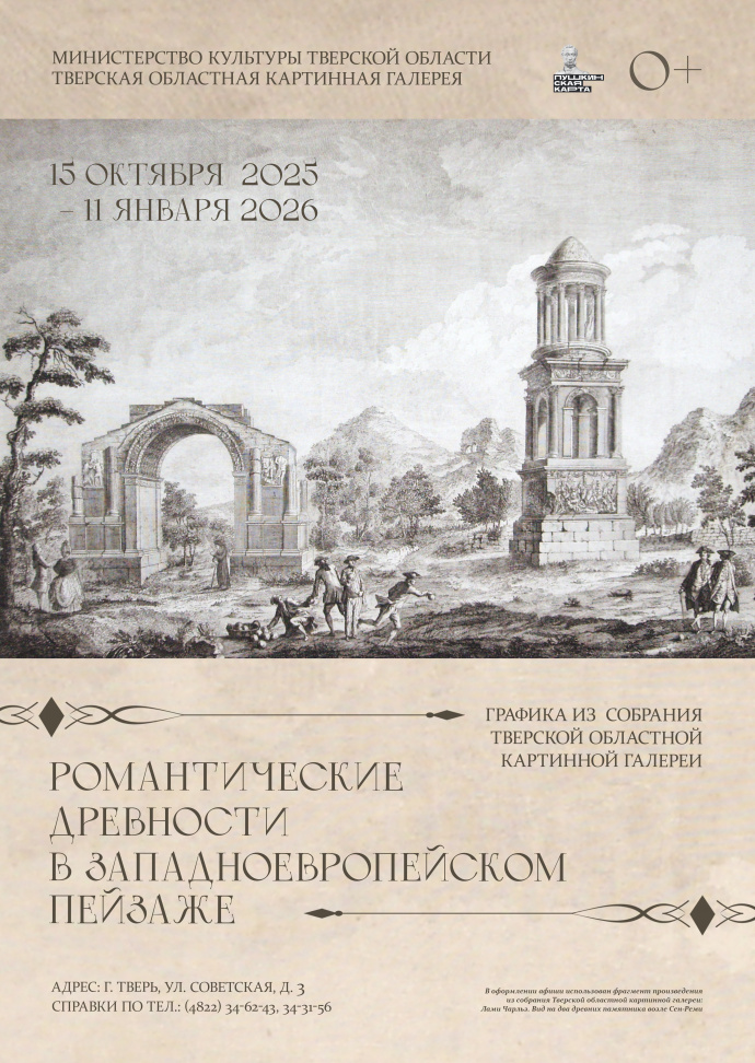 Выставка, открытая в Тверском императорском дворце, невелика по составу, но произведения, представленные на ней (некоторые – впервые), значительно дополняют отдел постоянной экспозиции западноевропейского искусства картинной галереи. Название символично – оно призвано рассказать зрителю об одной из наиболее романтических тем в изобразительном искусстве – теме архитектурных памятников прошлых столетий.