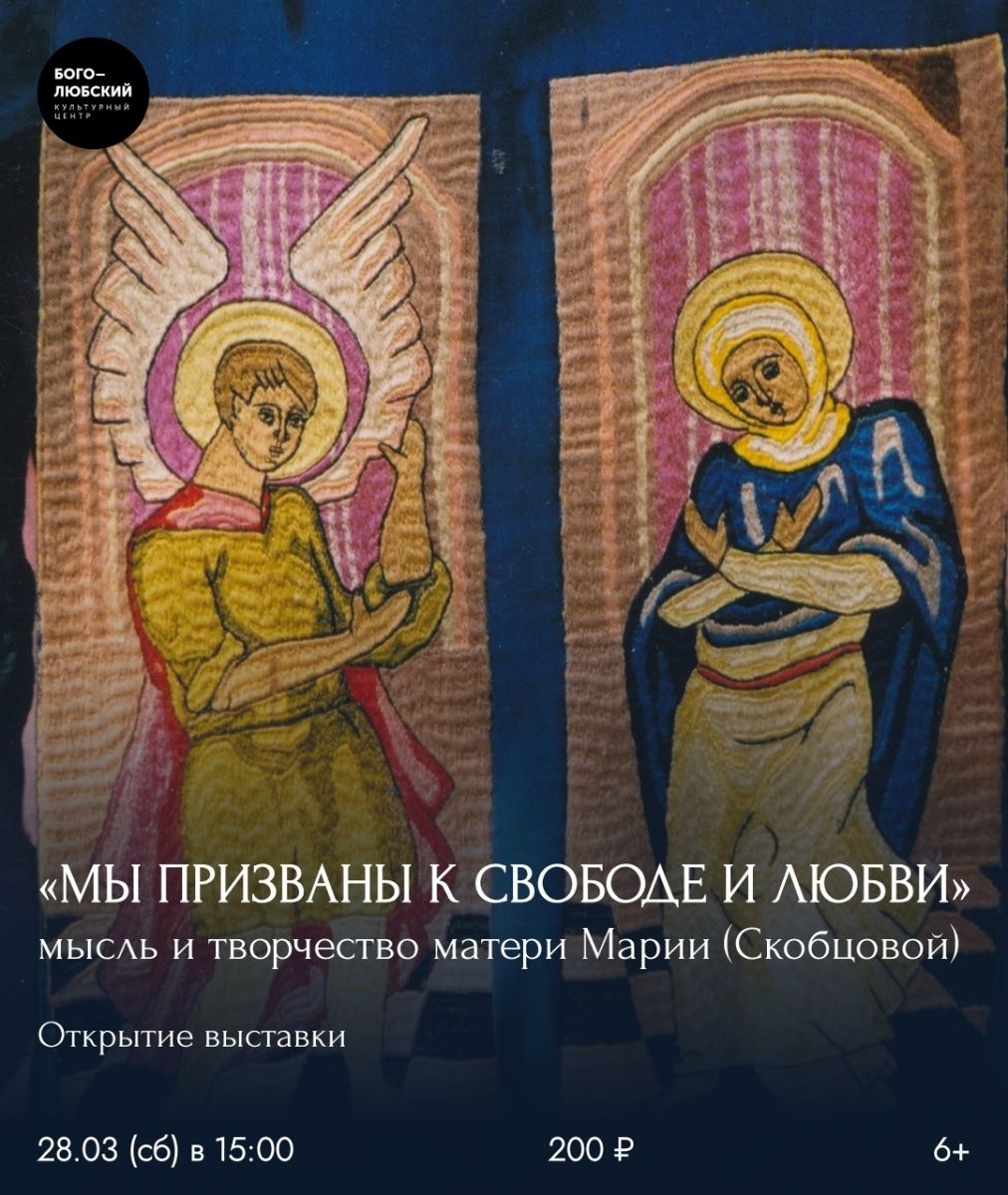 Где: б-р Шмидта, 12Мать Мария (Скобцова) (1891–1945) – русская монахиня, философ, богослов, художник, поэт. Для нее вера была неотделима от любви и деятельного присутствия в мире. В центре новой планшетной выставки – вышивальное творчество монахини в его неразрывной связи с мыслью и верой в то, что «путь к Богу лежит через любовь к человеку, и другого пути нет». Экспозиция рассказывает о том, как богословие становится практикой жизни, а повседневная забота о ближнем – «внехрамовой литургией», воплощенной в поразительных визуальных и поэтических образах, исполненных глубинного смысла. Авторы выставки: Татьяна Князева, Анна Дедусева. Консультант: Лидия Крошкина.