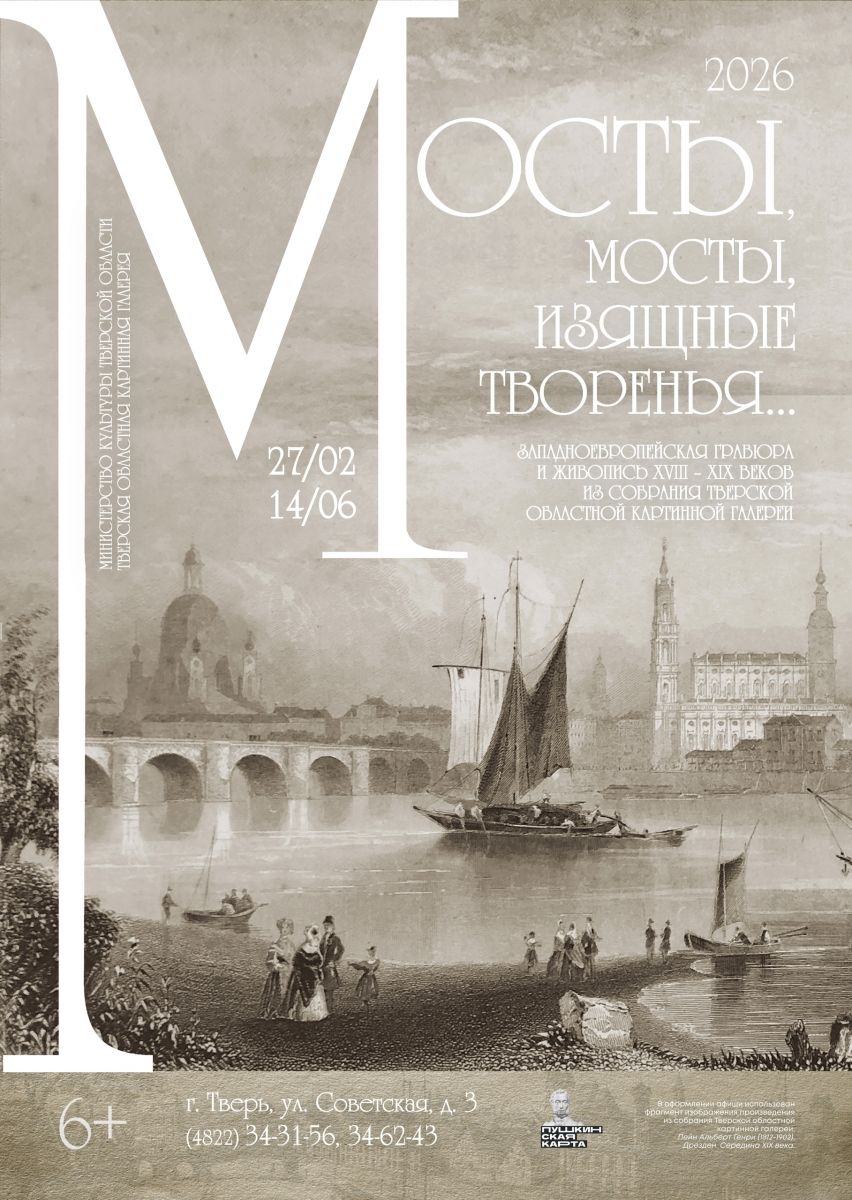 Экспозиция знакомит с произведениями западноевропейской гравюры и живописи XVIII – XIX веков из коллекции Тверской областной картинной галереи, на которых представлены разнообразные мосты. Так же представлены замечательные произведения французского фарфора фабрики Наст в Париже и прославленной Севрской Королевской мануфактуры. Их отличают виртуозное владение материалом, особая чистота фарфоровой массы и изысканные живописные сочетания в росписях, подчеркнутых позолотой.